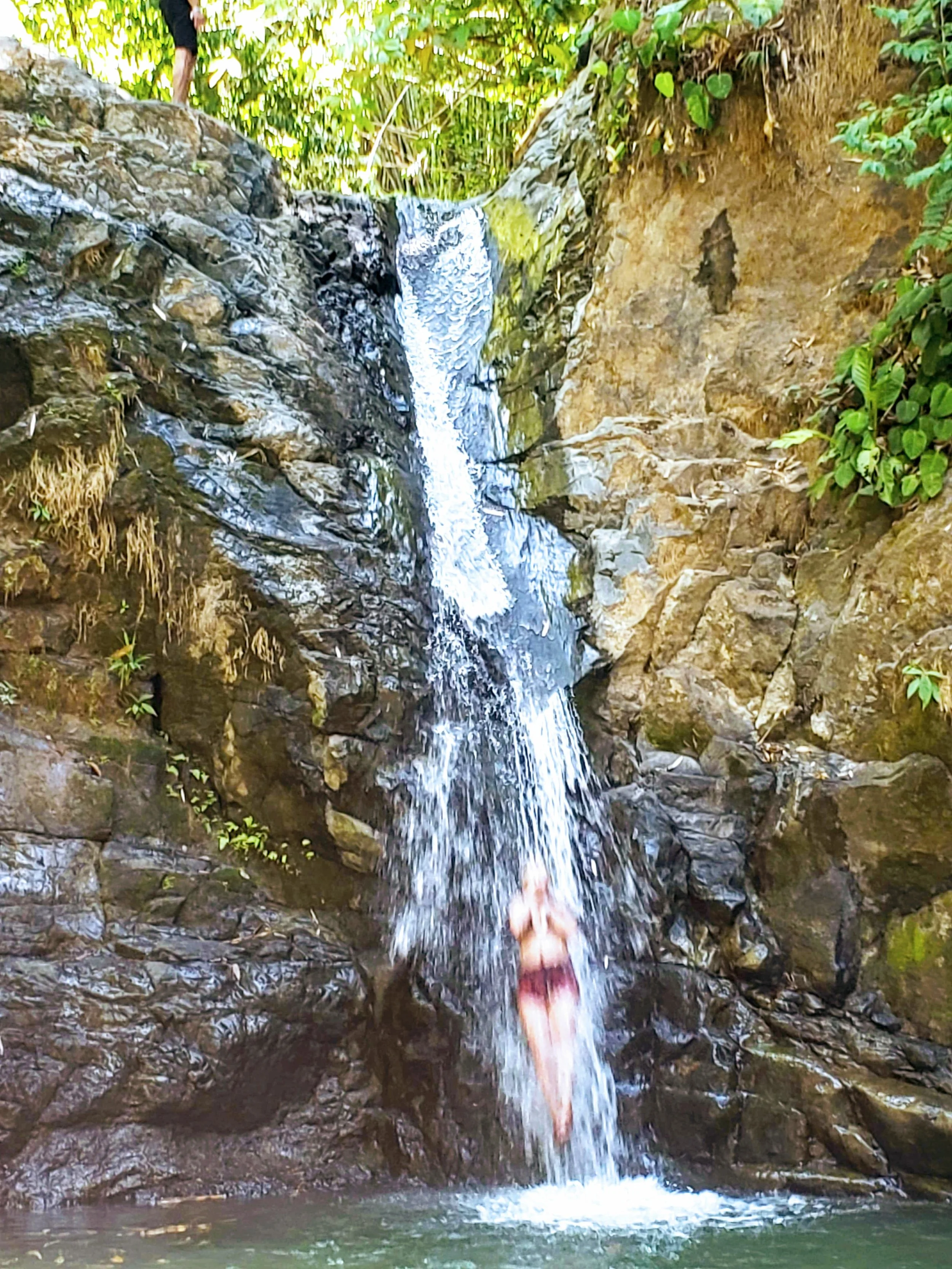 Braving a waterfall cliff jump outside of San Jose, Costa Rica